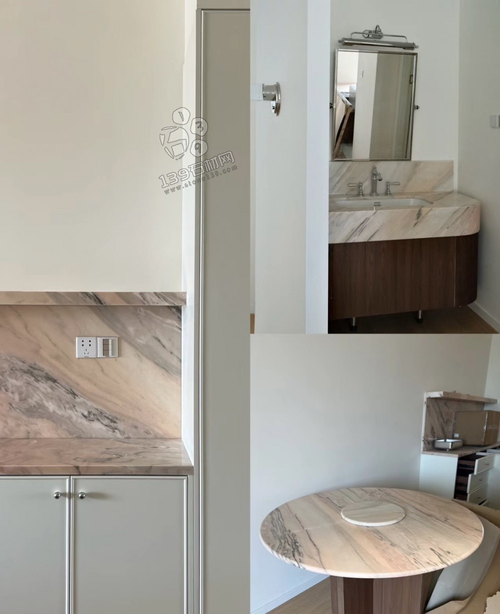 每一塊煙粉奢石大理石都是獨一無二的藝術品。大自然用它神奇的畫筆,在石材上勾勒出千變萬化的紋理,或如行云流水,或似繁花盛開,每一道紋路都訴說著一個獨特的故事。這種天然的美感,是任何人工制造都無法企及的。