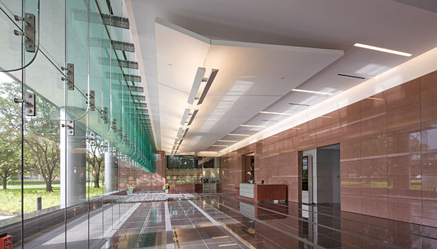 整個項目花了一年半的時間里從開始到結(jié)束完成設(shè)計,約9600平方英尺的紅色花崗巖,3200平方英尺的Mesabi黑色花崗巖和2600平方英尺的冷泉黑色花崗巖拋光,打磨和熱完成工作——由Coldspring冷泉,MN。 的材料被用于部分外立面,內(nèi)部大堂墻壁和地板上。 此外,拋光切諾基白色大理石鋪路材料,由田納西大理石公司Friendsville,TN,被合并為口音到地板的模式。
