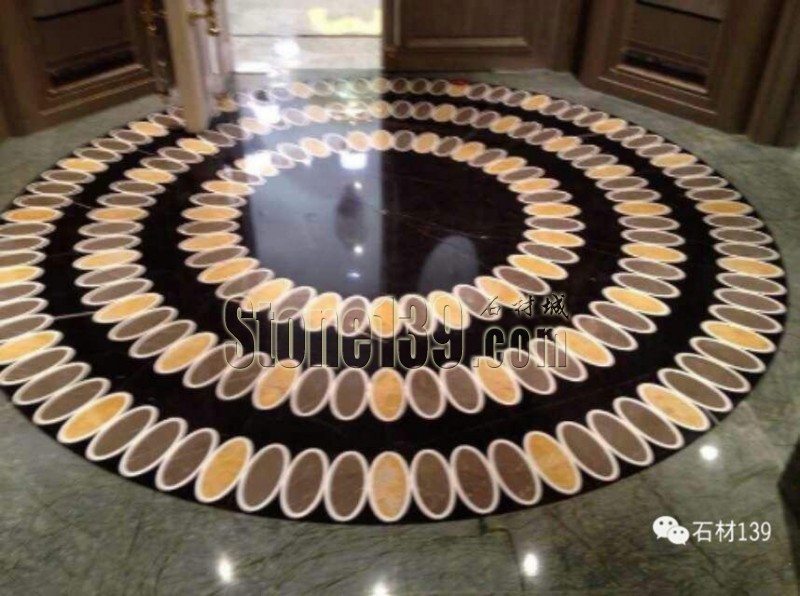 大廳圓形石材拼花 黑色和橢圓拼花