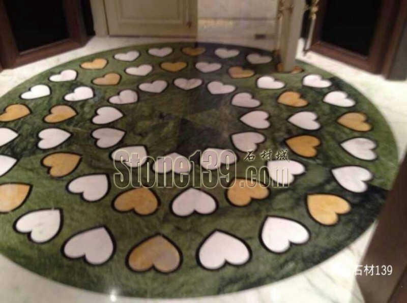 綠色底色大理石  米黃和白色心形拼花