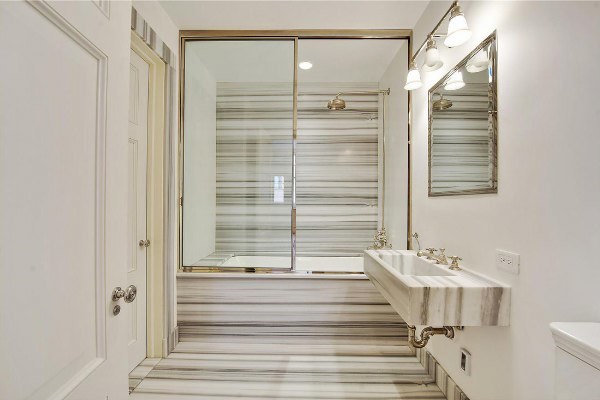 直紋白(馬爾馬拉白)是一種獨特的大理石,就像上面例子,水平平衡的大理石組合展示一個現代化的精致浴室,其優雅的氛圍讓你的家看起來像一個豪華酒店。