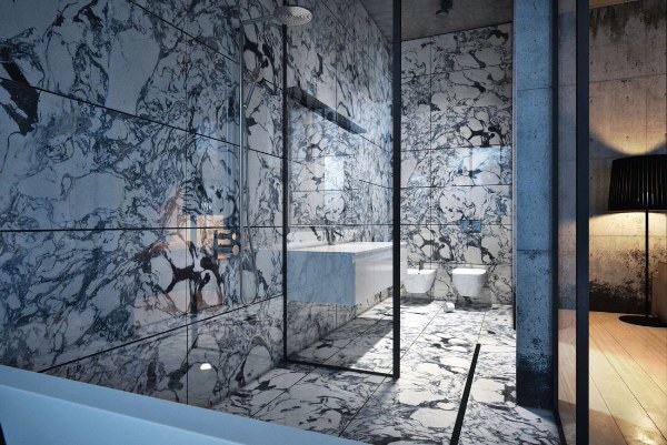 現代大理石浴室就像是奢侈品的本質,紋路、細節、深度處處都是驚喜,為了保證這一私人空間設計師使用了不同類型透明度設計。