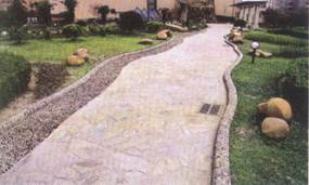 洗石子路緣,片石路面