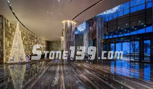 藍金沙紋路清晰,整體色感單純而又有豐富的紋理變化,沉穩大氣而又時尚細膩。應用如樓梯、柱子、臺面板、地面、墻面等。