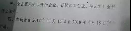三、全縣露天礦山開采企業、石材加工企業、磚瓦窯廠全部停止生產。