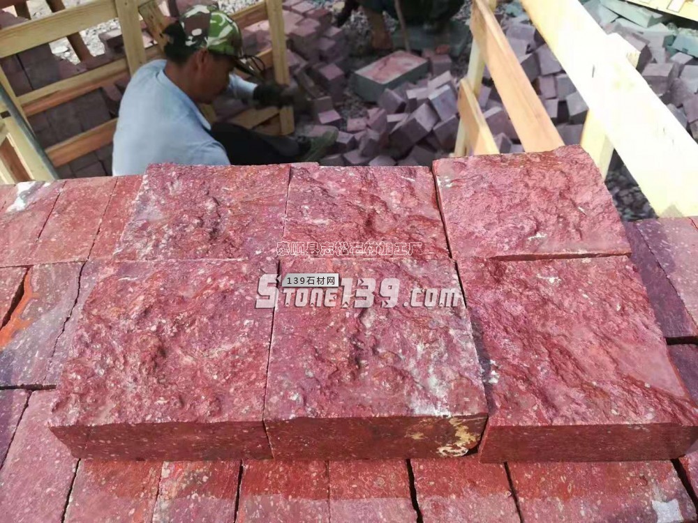 雞血紅小方塊 自然面馬蹄石 荔枝面地鋪