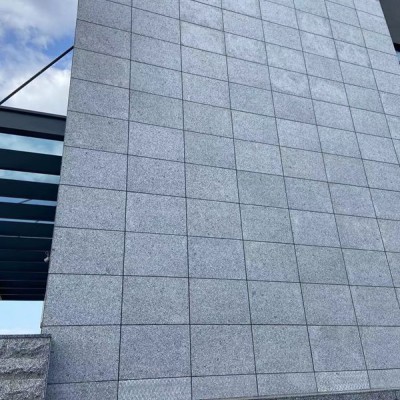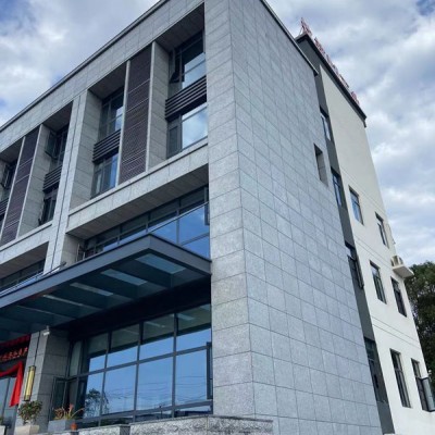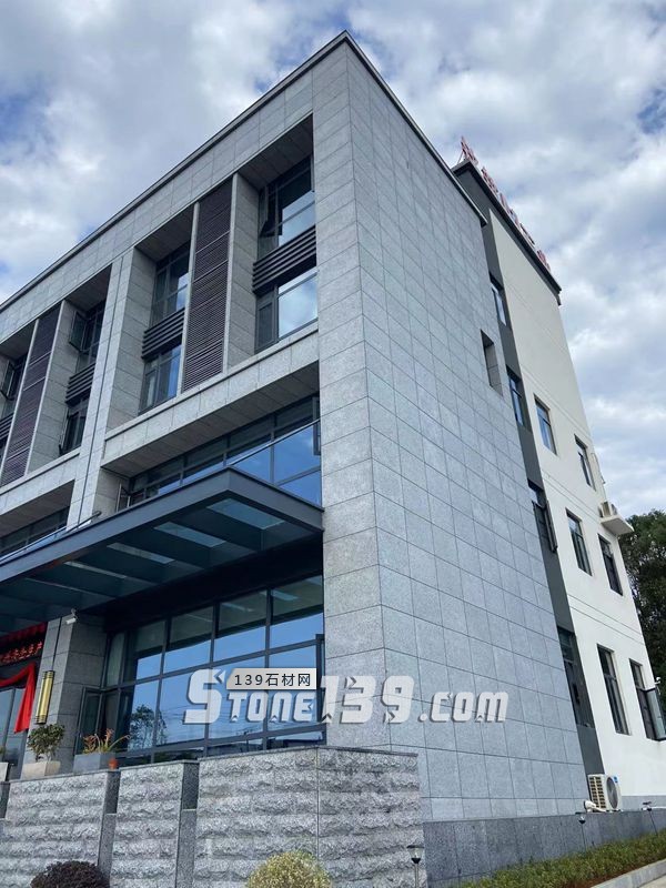 江西芝麻黑花崗巖荔枝面,是把天然石材表面打磨成如荔枝表面一樣的粗糙紋路,常用于建筑幕墻干掛上,呈現(xiàn)出現(xiàn)代化建筑和自然的過渡與融合。