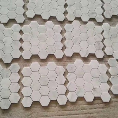 卡拉拉白馬賽克 白色大理石馬賽克 六邊形馬賽克